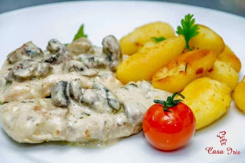 - Piept de pui cu sunca si ciuperci, cartofi la cuptor salata de varza/ cotlet de porc pane orez cu legume salata de sfecla rosie/ cascaval pane cartofi prajiti sos remoulade