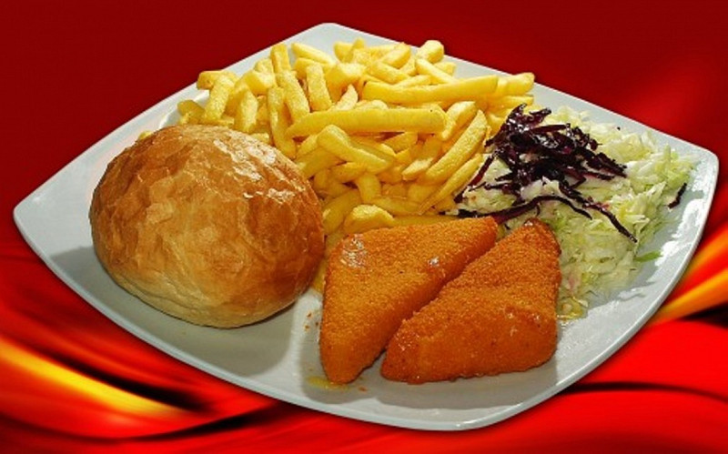 - Chiftelute marinate cu piure de cartofi/ piept de pui pane orez cu legume, salata de varza/ cascaval pane cartofi prajiti sos remoulade